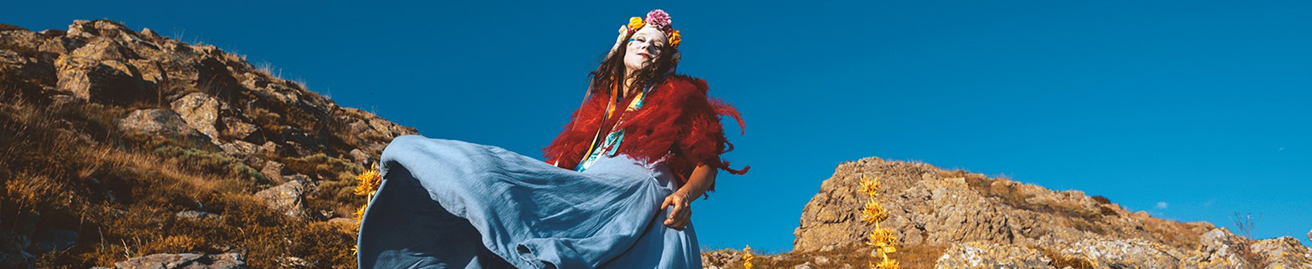 Passionnée par les traditions vocales nomades, elle explore la voix comme une maison mobile vibrant avec le monde. Formée au clown, elle intègre aussi le corps, le jeu et la poésie à ses performances.